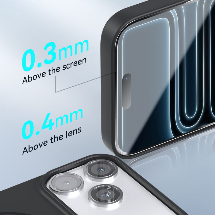 Designed for effortless use, the case features an upgraded shooting button system with a touch-sensitive panel, pressure sensor, and silicone protective layer for faster and more accurate camera control. The raised border design - 0.4mm above the lens and 0.3mm above the screen - offers reliable lens and screen protection, while the anti-fall construction guards your phone against daily drops and collisions.