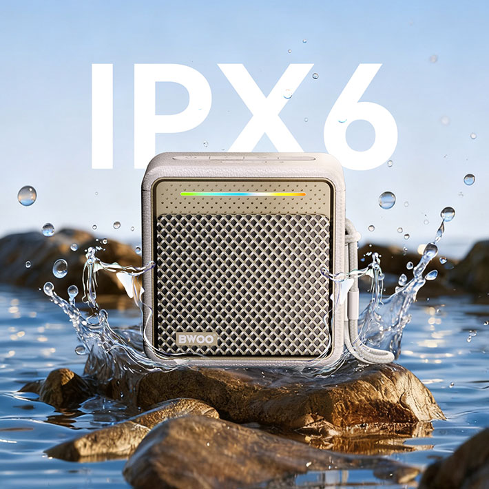 Experience high-quality sound wherever you go with the BWOO IPX6 Wireless Speaker. Equipped with a 52mm horn driver, this portable speaker delivers rich bass, clear vocals, and immersive HiFi audio performance.