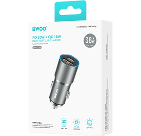 Therefore, the BWOO brand has recently developed a super cost-effective fast-charging car charger with 38W high-power dual-port output, which can quickly restore the power of the mobile phone even in a short period of time. The maximum power of iPhone charging with MFi certified data cable is up to PD20W fast charging, Samsung charging with Type-C QC3.0 data cable, the maximum power can reach 20W.
