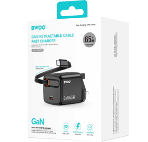BWOO 65W GaN Retractable Charger with Built-In USB-C Cable