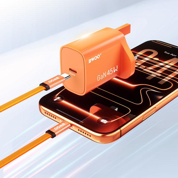The BWOO 45W PD GaN Charger (UK plug) delivers efficient and stable fast charging for smartphones, tablets, and USB-C laptops. With consistent 45W output, it powers your devices quickly while protecting battery health.