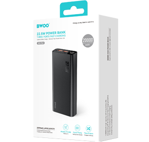 BWOO BO-P44 20000mAh fast charge power bank features all-around safety. Its shell is made of PC fire retardant and ABS materials, which not only create a delicate look but also have great resistance to high temperatures and corrosion, making it more durable and safer to use. Also, it is built with a newly upgraded smart chip that intelligently adjusts the output current and voltage to guarantee a fast and safe charging experience. Meanwhile, it comes equipped with nine safety protections, including over-voltage protection, over-charge protection, over-discharge protection, NTC battery protection, and more, which keep your devices from potential dangers.