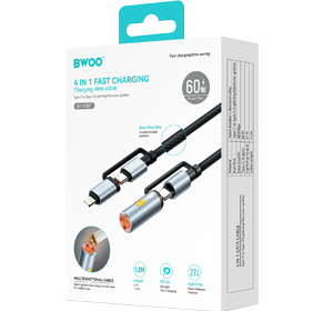BWOO 4-in-1 USB-C charging cable is designed to power your devices with convenience and efficiency. Compatible with multiple prevailing charging protocols such as PD fast charging protocols, this cable features both USB-C and Lightning connectors, making it perfect for charging a wide range of devices and can simultaneously power two devices without compromising on speed or performance. Through the USB-C connector, this USB-C cable can provide a robust power of 60W to charge all kinds of USB-C devices including laptops, tablets, and smartphones. Besides, this USB-C to lightning charging cable can deliver 27W power output to top up iPhone 7 to 14 series, airpods, iPads, and more.