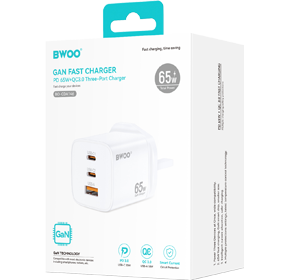 Still, troubled by the clutter chargers on your desktop? Please turn to our BWOO CDA146 3 in 1 charger, which simplifies your desktop in an instant. With three interfaces, including two USB-C and one USB-A, its USB-C support a maximum out of 65W while the USB-A port offers a max 30W charging, which can quickly charge three devices at once. In addition to impressive compatibility with mobile phones, tablets, laptops, and more, it has a universal voltage of 100V to 240V and offers three types of connectors to choose from, which makes it a perfect charging solution for different countries.